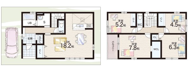 - ※完成予想図やCG合成画像は、門塀・植栽・庭・外観等、実際とは多少異なる場合があります。