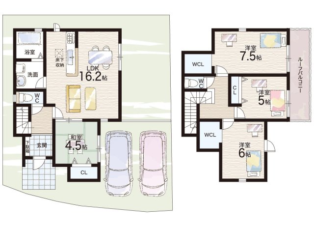 - ※完成予想図やCG合成画像は、門塀・植栽・庭・外観等、実際とは多少異なる場合があります。