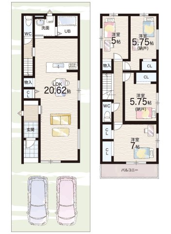 | 間取り | 2LDK+S(納戸) | 建物構造 | 木造 地上2階建て |