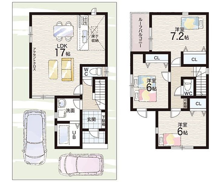 - ※完成予想図やCG合成画像は、門塀・植栽・庭・外観等、実際とは多少異なる場合があります。