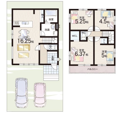 - ※完成予想図やCG合成画像は、門塀・植栽・庭・外観等、実際とは多少異なる場合があります。