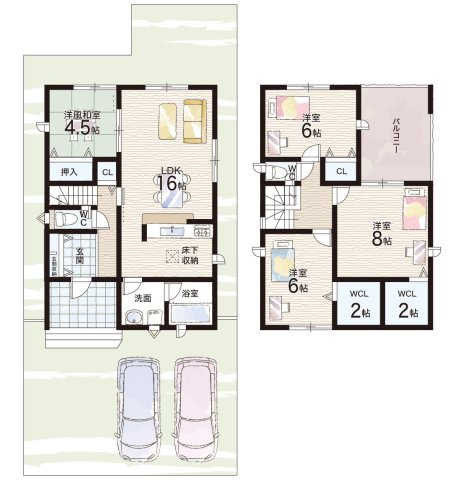 - ※完成予想図やCG合成画像は、門塀・植栽・庭・外観等、実際とは多少異なる場合があります。