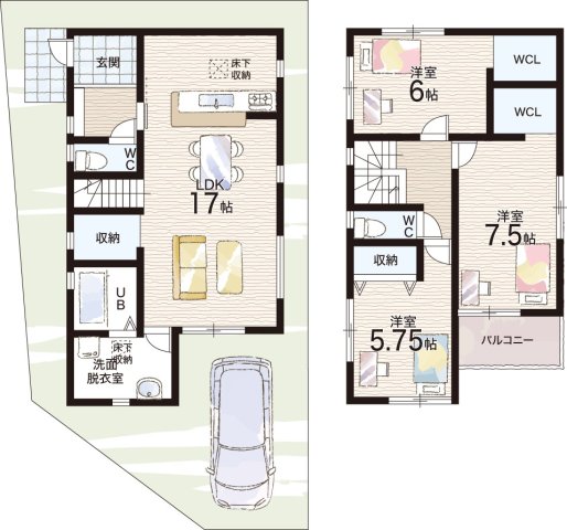 - ※完成予想図やCG合成画像は、門塀・植栽・庭・外観等、実際とは多少異なる場合があります。