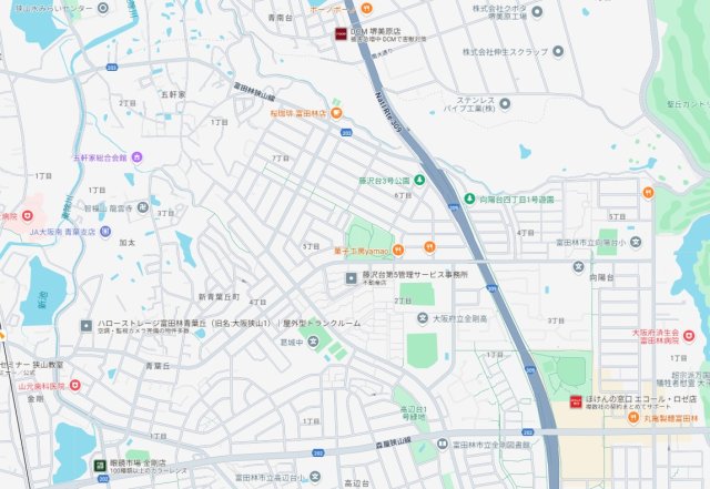 南海高野線「大阪狭山市」駅 藤沢台五丁目からバス乗車13分 徒歩3分 南海高野線「金剛」駅 徒歩27分 南海高野線「狭山」駅 徒歩34分 |