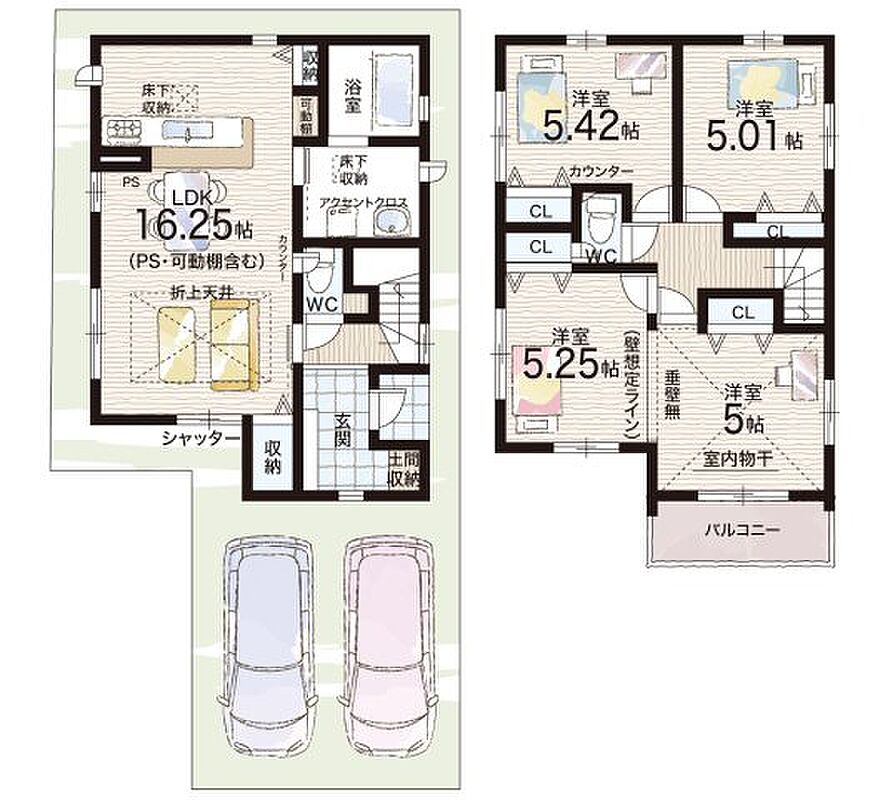 - ※完成予想図やCG合成画像は、門塀・植栽・庭・外観等、実際とは多少異なる場合があります。