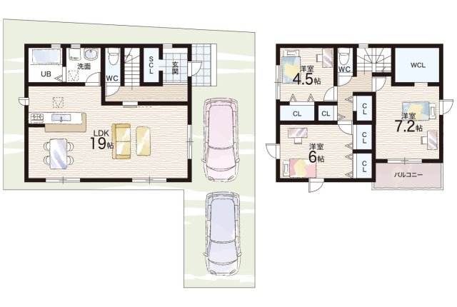 - ※完成予想図やCG合成画像は、門塀・植栽・庭・外観等、実際とは多少異なる場合があります。