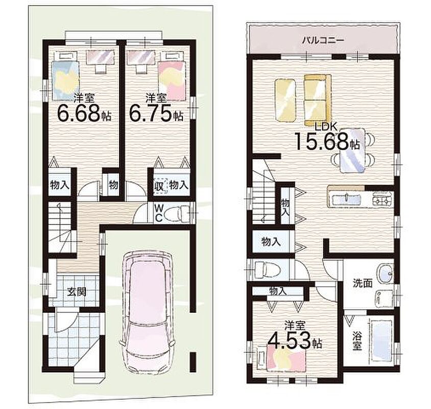 | 建物面積 | 67.90m2~82.13m2 | 土地面積 | 72.94m2~76.51m2 |