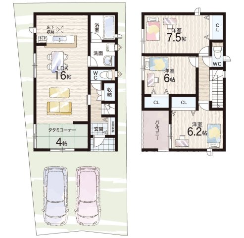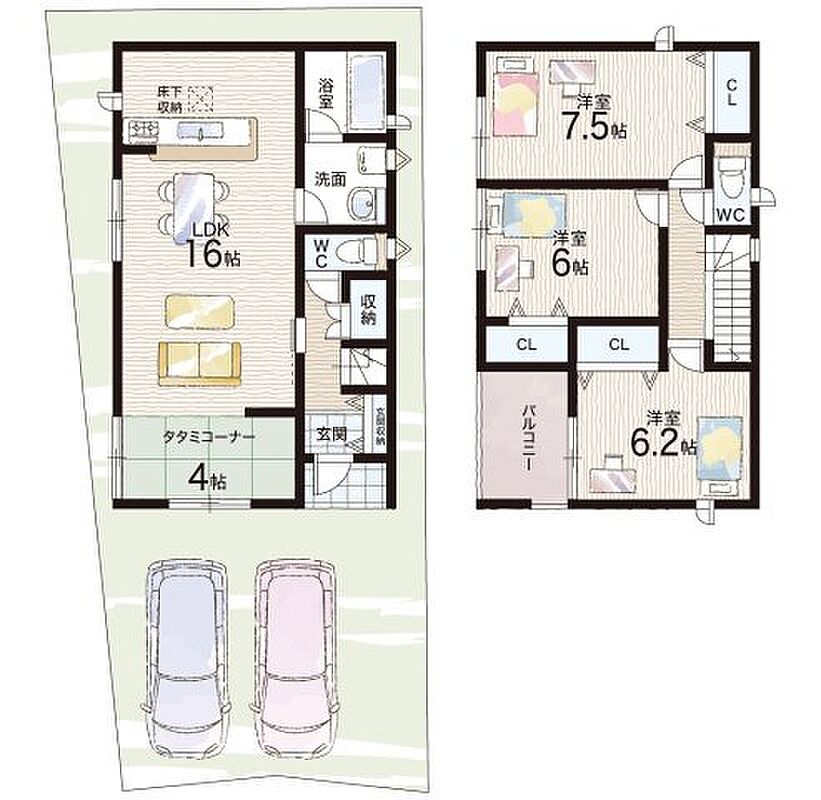 - ※完成予想図やCG合成画像は、門塀・植栽・庭・外観等、実際とは多少異なる場合があります。