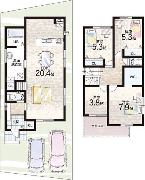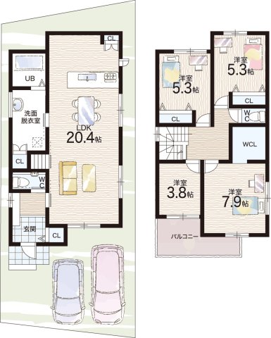 - ※完成予想図やCG合成画像は、門塀・植栽・庭・外観等、実際とは多少異なる場合があります。