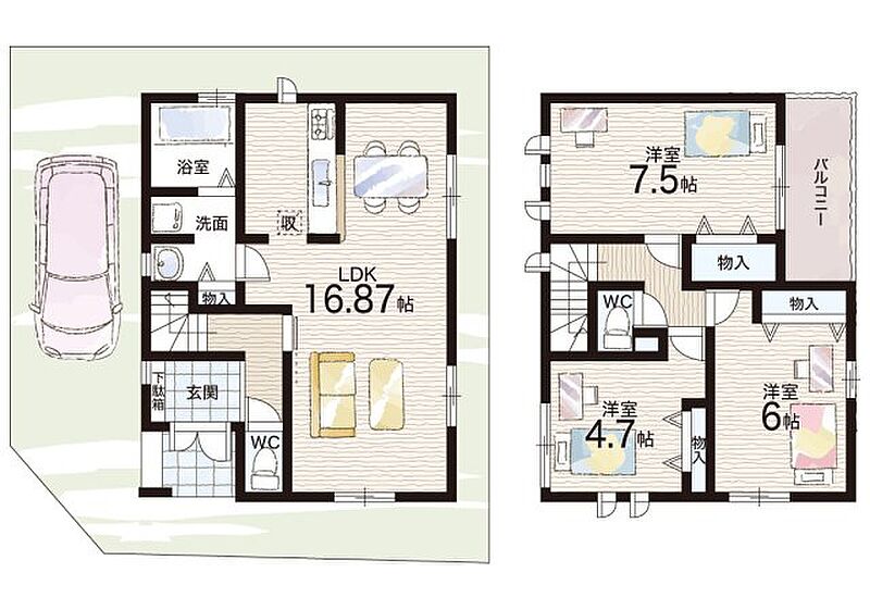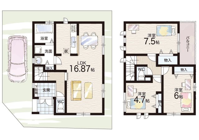 - ※完成予想図やCG合成画像は、門塀・植栽・庭・外観等、実際とは多少異なる場合があります。