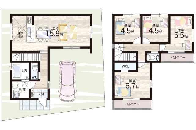 1区画 間取り 4LDK 価格 4498万円 建物面積 88.39m2 土地面積 127.67m2