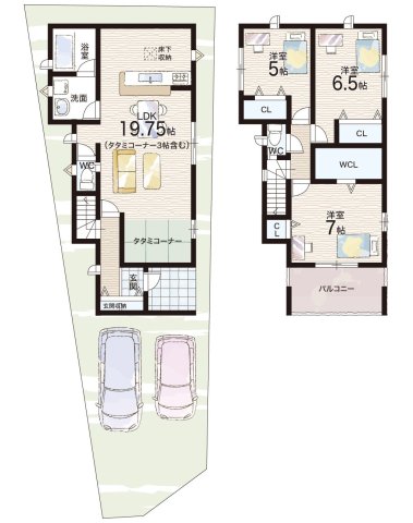 - ※完成予想図やCG合成画像は、門塀・植栽・庭・外観等、実際とは多少異なる場合があります。