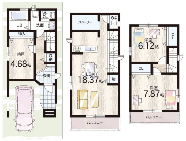 | 間取り | 2LDK+S(納戸) | 建物構造 | 木造 地上3階建て |