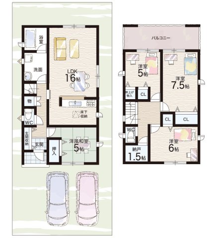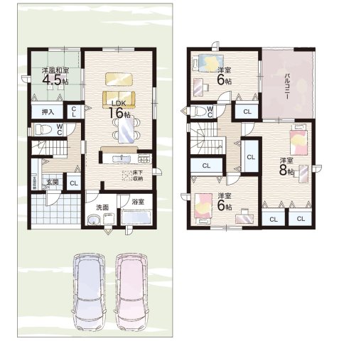 - ※完成予想図やCG合成画像は、門塀・植栽・庭・外観等、実際とは多少異なる場合があります。