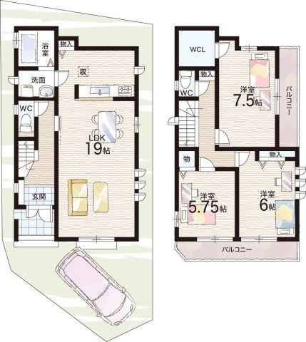 | 間取り | 2LDK+S(納戸) | 建物構造 | 木造 地上3階建て |