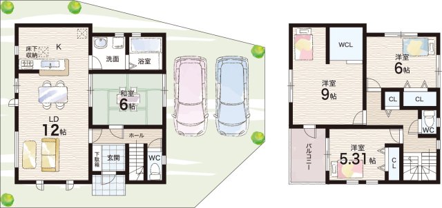- ※完成予想図やCG合成画像は、門塀・植栽・庭・外観等、実際とは多少異なる場合があります。