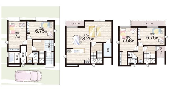 - ※完成予想図やCG合成画像は、門塀・植栽・庭・外観等、実際とは多少異なる場合があります。