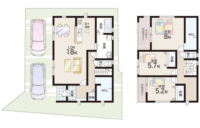 - ※完成予想図やCG合成画像は、門塀・植栽・庭・外観等、実際とは多少異なる場合があります。