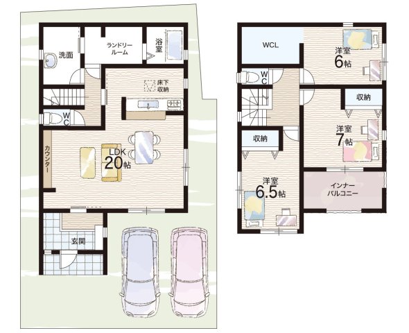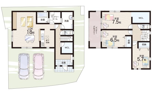 - ※完成予想図やCG合成画像は、門塀・植栽・庭・外観等、実際とは多少異なる場合があります。