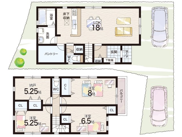 - ※完成予想図やCG合成画像は、門塀・植栽・庭・外観等、実際とは多少異なる場合があります。