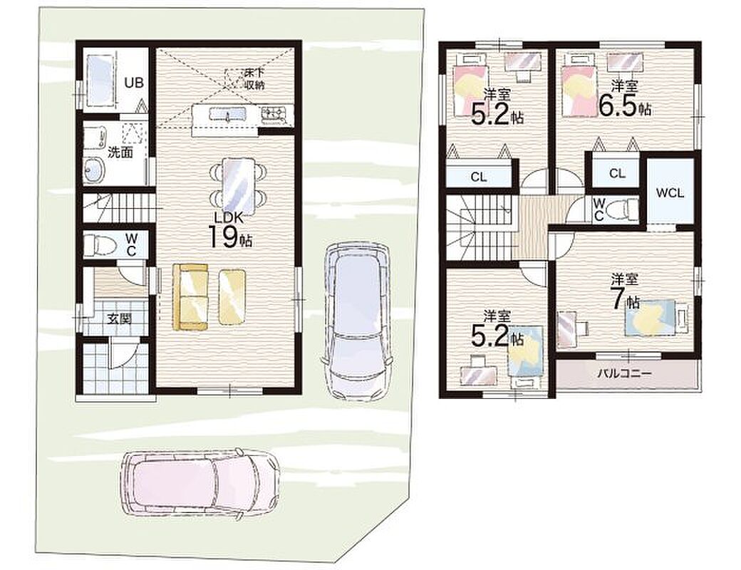 - ※完成予想図やCG合成画像は、門塀・植栽・庭・外観等、実際とは多少異なる場合があります。
