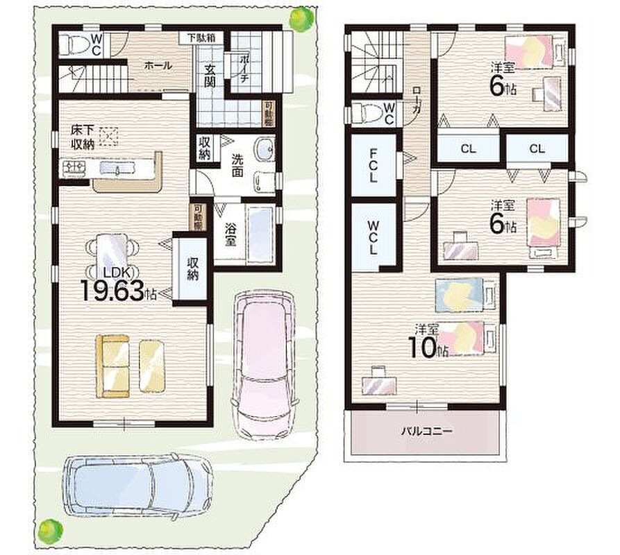 - ※完成予想図やCG合成画像は、門塀・植栽・庭・外観等、実際とは多少異なる場合があります。