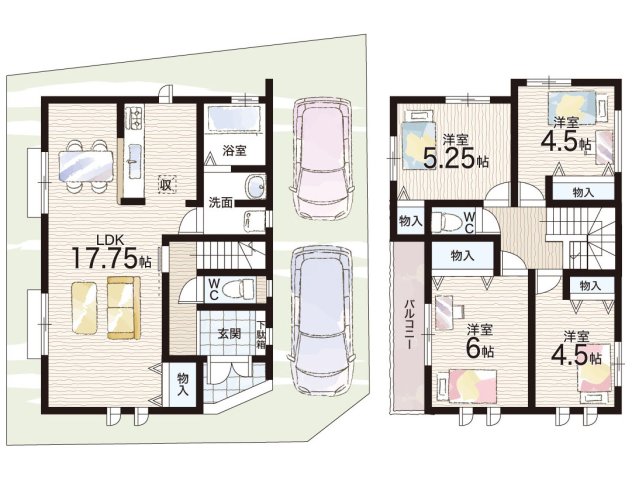 - ※完成予想図やCG合成画像は、門塀・植栽・庭・外観等、実際とは多少異なる場合があります。