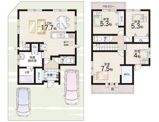 - ※完成予想図やCG合成画像は、門塀・植栽・庭・外観等、実際とは多少異なる場合があります。