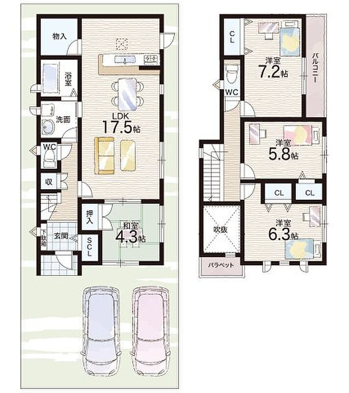 | 駐車場 | 2台 | 道路の幅員 | 北西側6.3m公道 |