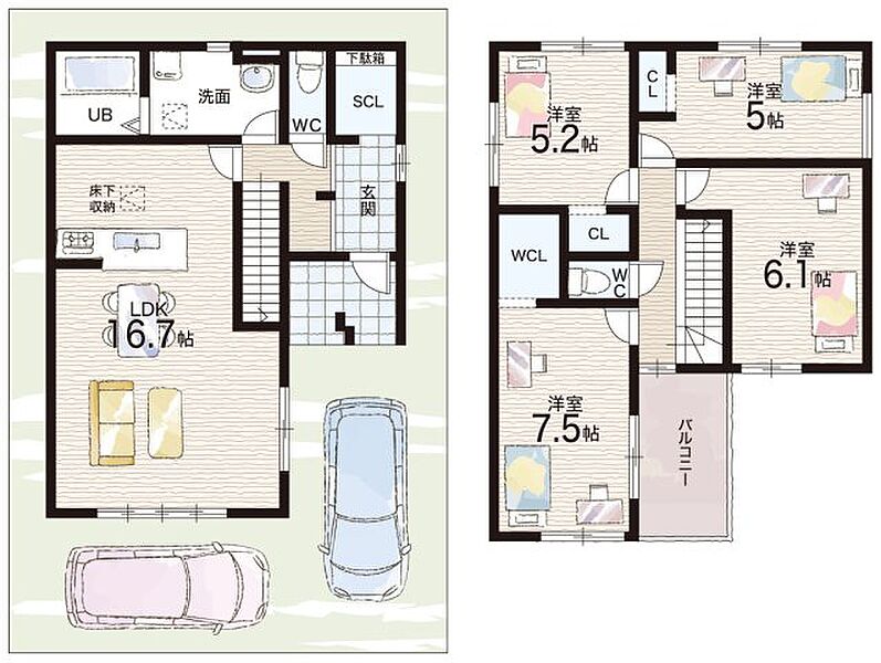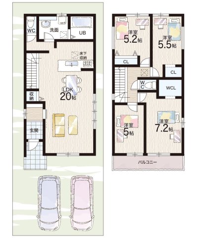 - ※完成予想図やCG合成画像は、門塀・植栽・庭・外観等、実際とは多少異なる場合があります。