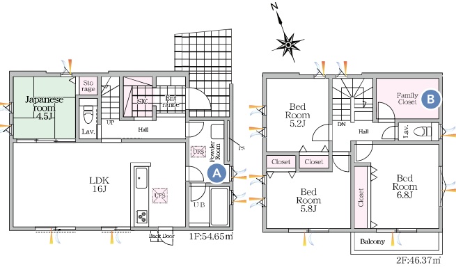 | 建物面積 | 99.42m2~101.53m2 | 土地面積 | 134.13m2~187.18m2 |