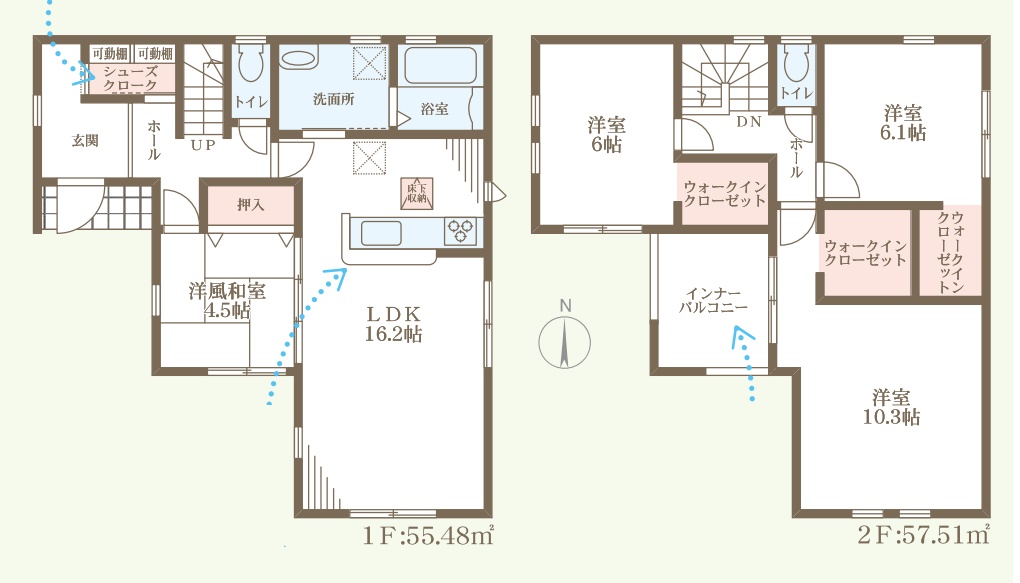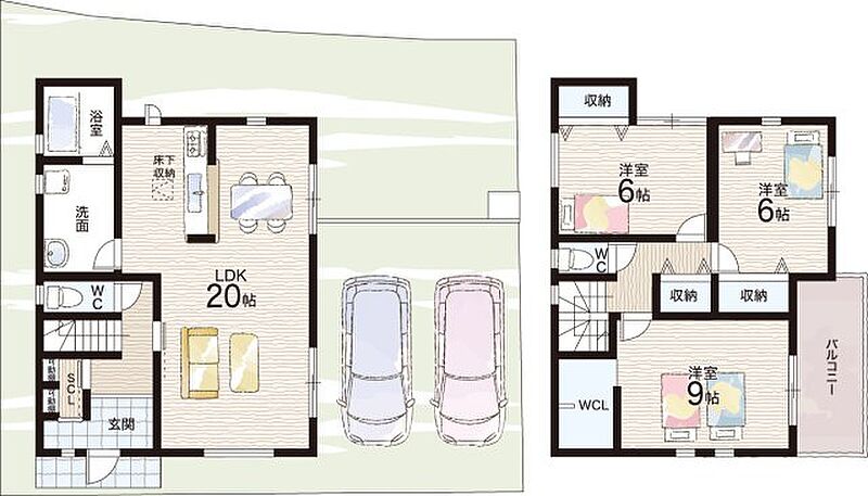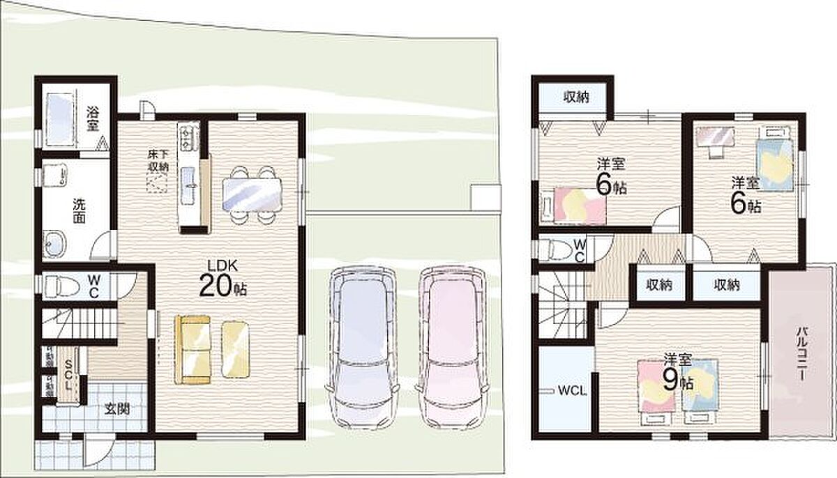 - ※完成予想図やCG合成画像は、門塀・植栽・庭・外観等、実際とは多少異なる場合があります。