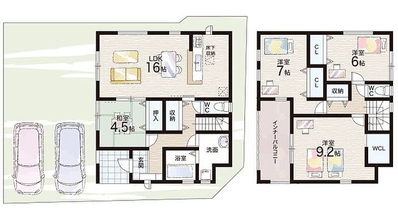 - ※完成予想図やCG合成画像は、門塀・植栽・庭・外観等、実際とは多少異なる場合があります。
