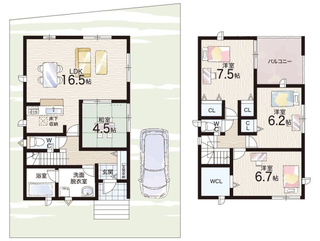 - ※完成予想図やCG合成画像は、門塀・植栽・庭・外観等、実際とは多少異なる場合があります。