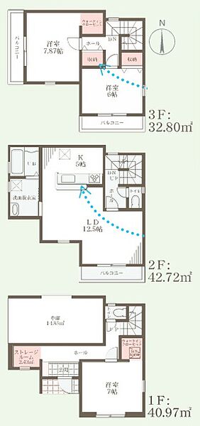 2号地 間取り 3LDK+S(納戸) 価格 3580万円 建物面積 119.56m2 土地面積 64.82m2