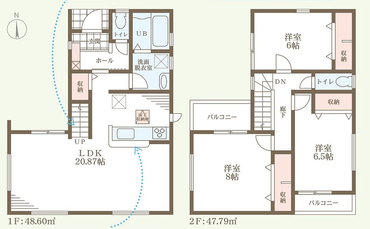 | 建物面積 | 96.39m2~114.16m2 | 土地面積 | 86.78m2~97.47m2 |