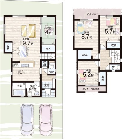 - ※完成予想図やCG合成画像は、門塀・植栽・庭・外観等、実際とは多少異なる場合があります。