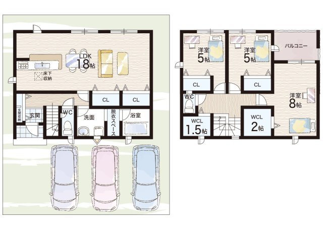 - ※完成予想図やCG合成画像は、門塀・植栽・庭・外観等、実際とは多少異なる場合があります。
