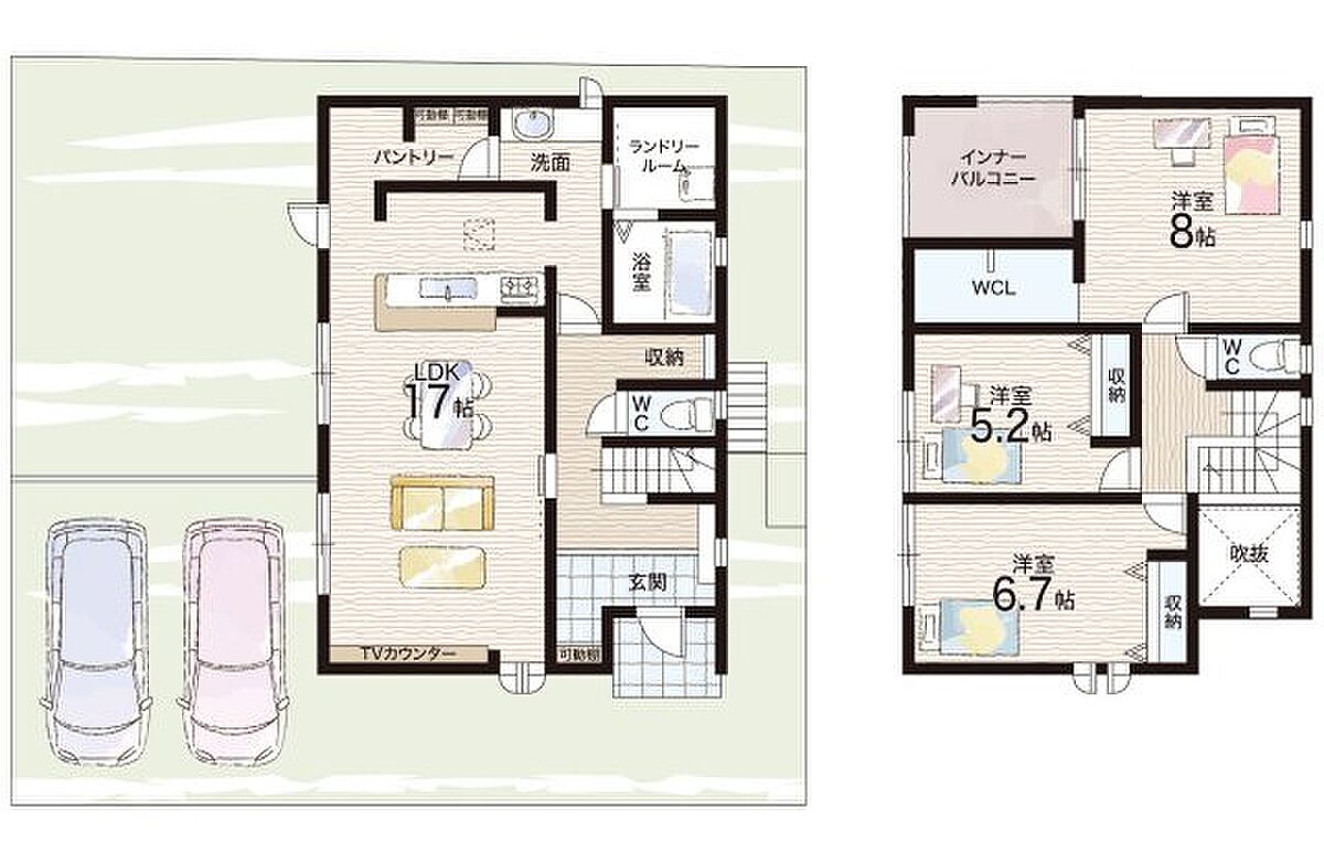 - ※完成予想図やCG合成画像は、門塀・植栽・庭・外観等、実際とは多少異なる場合があります。