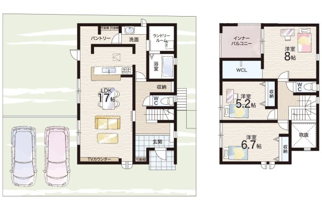 - ※完成予想図やCG合成画像は、門塀・植栽・庭・外観等、実際とは多少異なる場合があります。