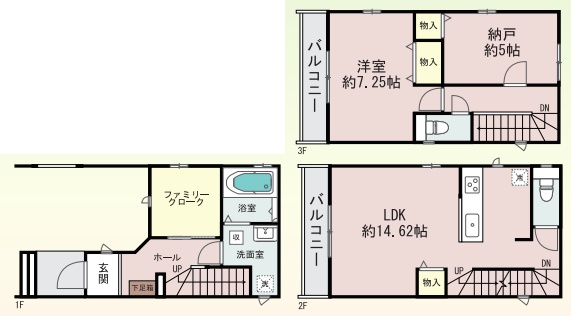 | 間取り | 1LDK+S(納戸) | 建物構造 | 木造 地上3階建て |