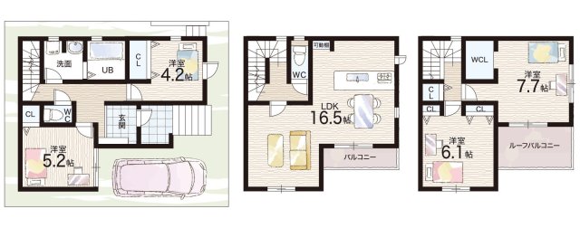 - ※完成予想図やCG合成画像は、門塀・植栽・庭・外観等、実際とは多少異なる場合があります。