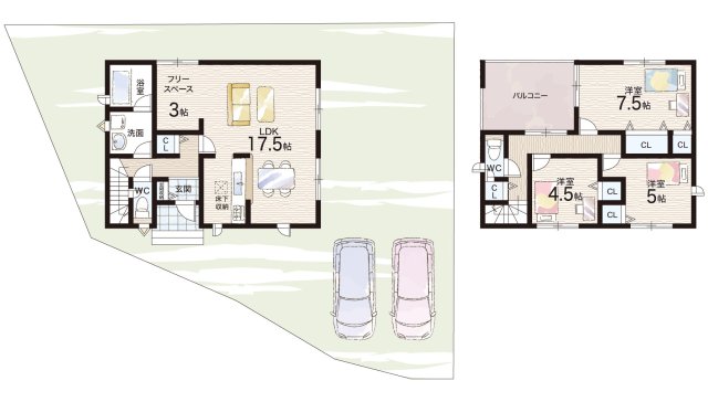 - ※完成予想図やCG合成画像は、門塀・植栽・庭・外観等、実際とは多少異なる場合があります。