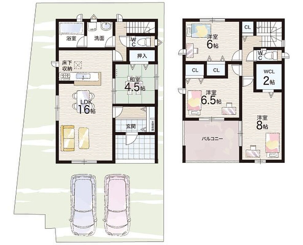 - ※完成予想図やCG合成画像は、門塀・植栽・庭・外観等、実際とは多少異なる場合があります。
