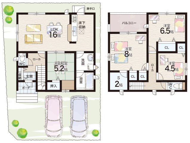| 間取り | 4LDK+S(納戸) | 建物構造 | 木造 地上2階建て |