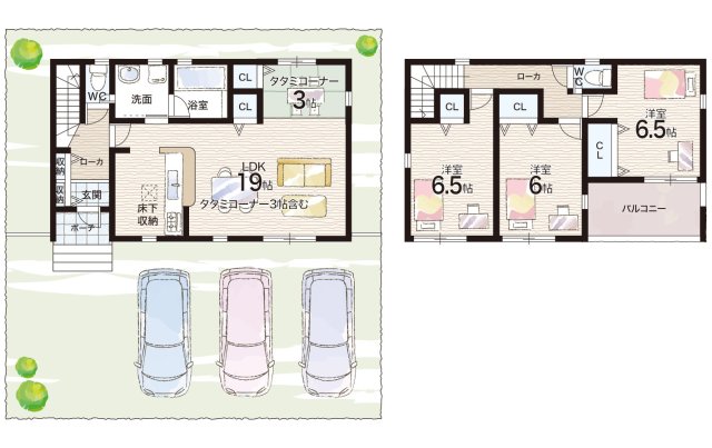 - ※完成予想図やCG合成画像は、門塀・植栽・庭・外観等、実際とは多少異なる場合があります。