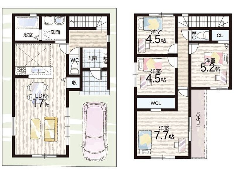 - ※完成予想図やCG合成画像は、門塀・植栽・庭・外観等、実際とは多少異なる場合があります。