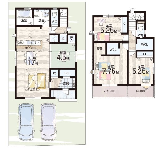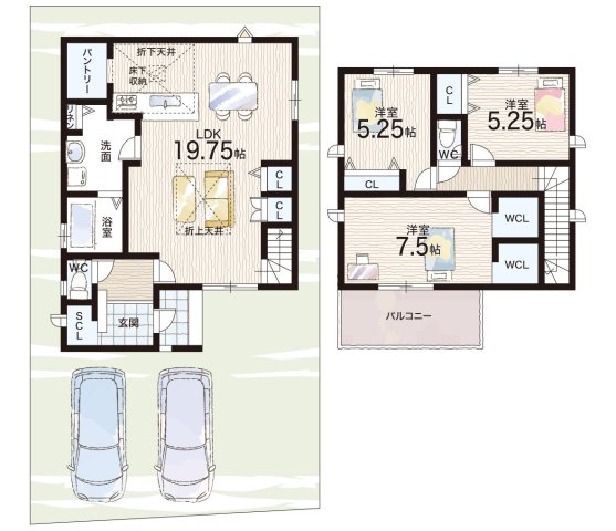 - ※完成予想図やCG合成画像は、門塀・植栽・庭・外観等、実際とは多少異なる場合があります。