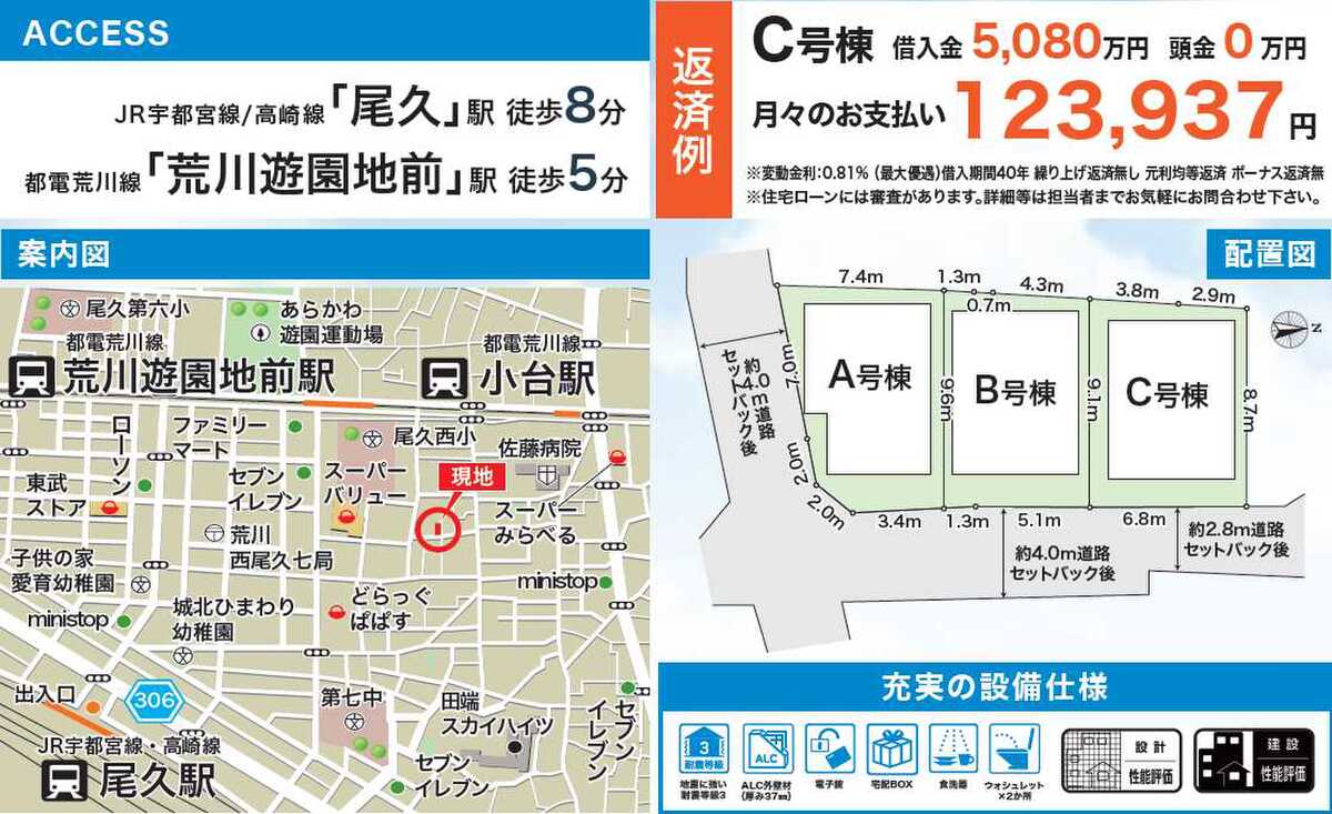 ■上野東京ライン「尾久」駅徒歩8分 上野、東京、新橋、品川駅など…乗り換え無し! ■快適な暮らしを育む 省エネルギー性能に優れたZEH水準住宅・東京ゼロエミ住宅認証!