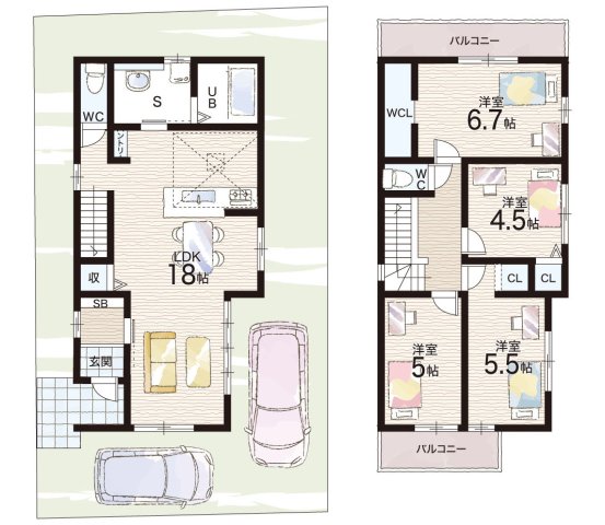 - ※完成予想図やCG合成画像は、門塀・植栽・庭・外観等、実際とは多少異なる場合があります。
